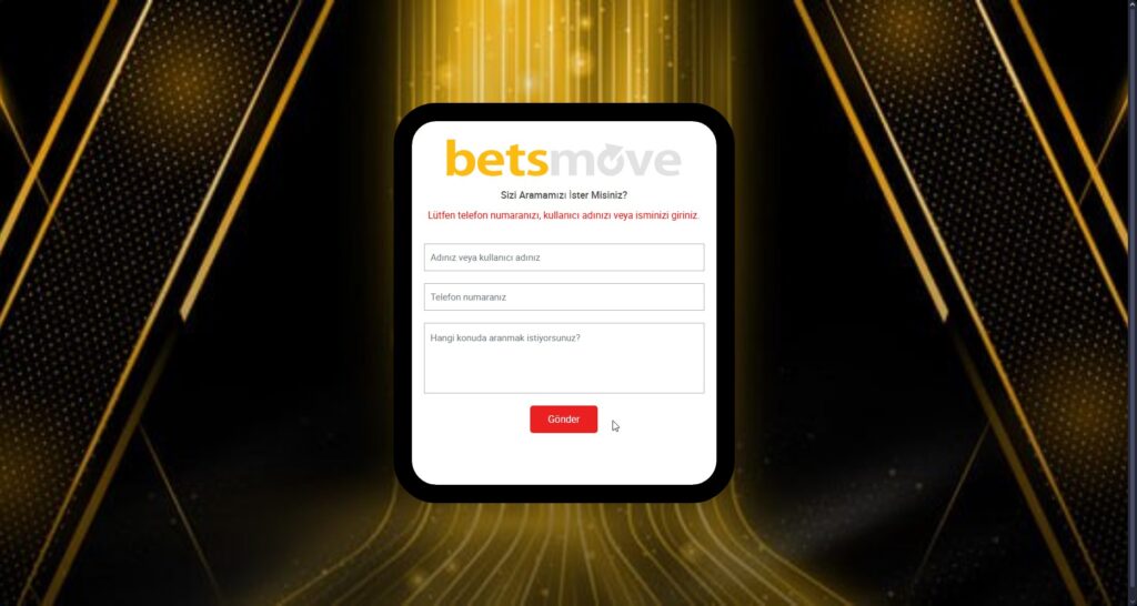 - Teknik Sorunlar: Oyun içi veya bahis yapılırken karşılaşılan teknik sorunlar, Betsmove müşteri hizmetleri tarafından incelenir ve kullanıcıya detaylı geri dönüş yapılır.